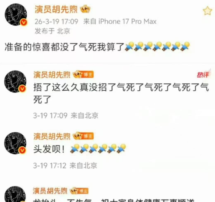 现场视频流出后,胡先煦厚谊透顶失控,一连发布四条微博直言我方快被气死,闹心捂了许久的惊喜付诸东流,字里行间全是少年东说念主的直白与改悔。可没过多久,这几条发泄厚谊的微博被沿途秒删,他转而发布一条善良的祝愿动态,致意粉丝、商定次日碰面,派头极速漂浮。此事发酵后,网友不雅点分红两大阵营,争论特别显着。绝大大王人网友以为胡先煦太过简直,有活东说念主感,少年东说念主藏惊喜被刺破的闹心太共情,不是耍大牌,仅仅无为东说念主王人会有的厚谊;也有部分网友认为他不够缄默,公世东说念主物当众发泄厚谊失当,容易被过度解读,秒删亦然实时止损。
